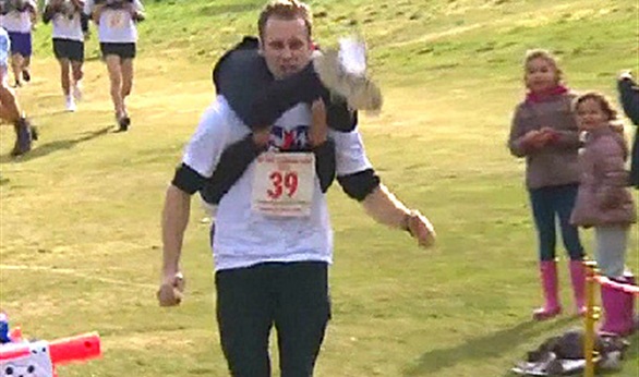 في يوم ربيعي مشمس شهدت بلدة دوكنج جنوب شرقي إنجلترا يوم الأحد الماضي بطولة "حمل الزوجة".