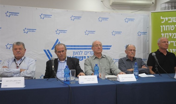In addition to Shavit, the press conference featured Brig. Gen. (ret.) Asher Levy, Maj.-Gen. (res.) Amnon Reshef, Brig. Gen. (ret.) Giora Inbar and Aryeh Felman, former division head and deputy director of the Shin Bet (Israel Security Agency).