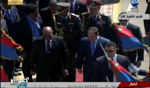 استقبل الرئيس السيسي، رئيس دولة السودان عمر البشير، لدى وصوله بمطار شرم الشيخ الدولى، لحضور المؤتمر الاقتصادي، الذى يبدأ اليوم.