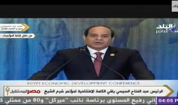 وقال الرئيس فى كلمته الافتتاحية للمؤتمر الاقتصادى بشرم الشيخ، إن تلك اللحظة تشهد حضورا مميزا لشركائنا الدوليين، مؤكدا أن تلك الشراكة لابد أن تترجم إلى مزيد من الاستثمارات التي يجب أن تنعكس على تحقيق مبدأ العدالة الاجتماعية وتوفير مزيد من فرص العمل، لافتا إلى أن تلك هى التنمية الشاملة التى تسعى إليها مصر.