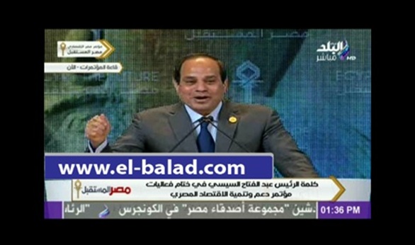 وجه الرئيس عبد الفتاح السيسي، الشكر لجميع الحاضرين والمشاركين في فعاليات مؤتمر شرم الشيخ الاقتصادي، قائلا فى كلمته الختامية للمؤتمر: "أرحب بكم جميعا وشكرا جزيلا".