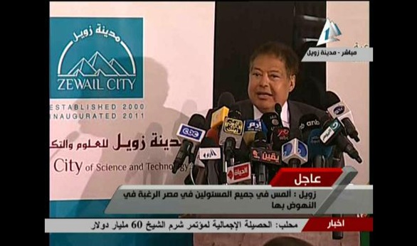 وأعلن عن تبرع رجل الأعمال سميح ساويرس بـ100 مليون جنيه لإنشاء مدينة زويل.