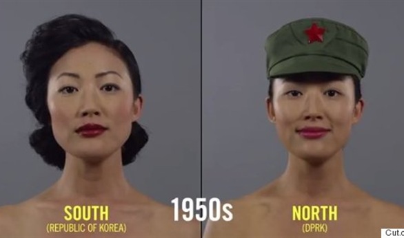 وبداية من عام 1950 انقسمت الشاشة لاستعراض الاختلافات بين الجمال في كوريا الشمالية وجارتها الجنوبية.