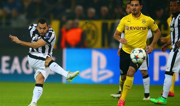 قاد المهاجم الأرجنتيتي كارلوس تيفيز فريقه يوفنتوس للفوز على بروسيا دورتموند الألماني في عقر داره بثلاثية نظيفة والتأهل لدور الثمانية في دوري أبطال أوروبا لكرة القدم "الشامبيونزلييج".