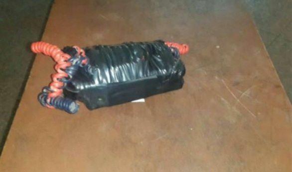 وتبين من الفحص بمعرفة مفتشى المفرقعات أن الجسم لإسطوانة بلاستيكية مُحكمة الغلق من طرفيها طولها حوالى 30 سم ، وقطرها 3 سم ، مُثبت عليها دائرة إلكترونية كاملة وبطارية جافة ـ كما تبين أن الإسطوانة تحوى كمية من الزلط والرمل .