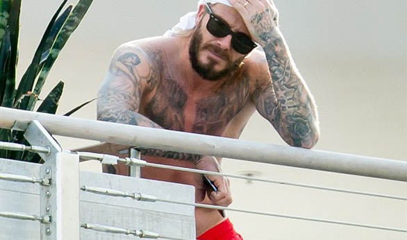 التقطت عدسات المصوريين صورا للاعب ديفيد بيكهام أثناء تواجده بأحد شواطىء ميامي .وظهر بيكهام "39 عام" برسومات التاتو تغطى جسده مترديا شورت أحمر.