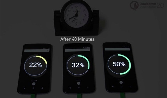 ورصد مختبرو التقنية تفوق Quick Charge 2.0 عن التقنيات القديمة بفارق واضح، حيث تمكن الهاتف من إعادة شحن بطاريته سعة 3200 ملي أمبير بنحو 50% من طاقتها في زمن قدره 40 دقيقة فقط، بينما تراوحت النسبة بين 22 و32% للهاتفين الآخرين في نفس الزمن.