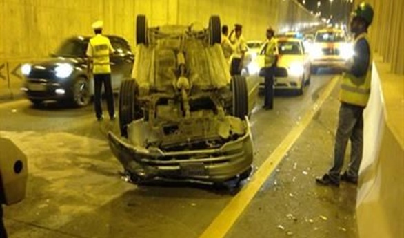 انقلاب سيارة داخل نفق الأزهر.. والمرور ينجح فى تسيير الحركة