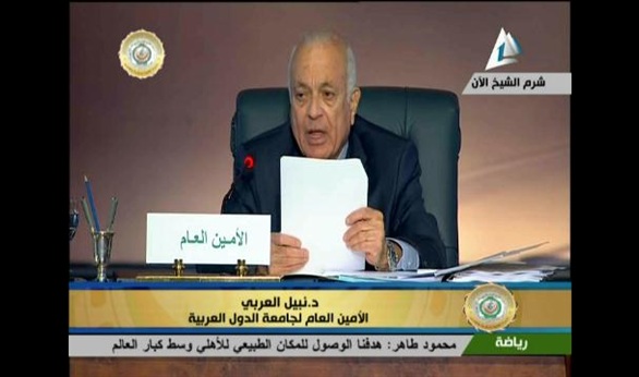 قال نبيل العربي، الأمين العام للجامعة العربية، في الإعلان الختامي للقمة العربية الـ26، "إن قادة الدول العربية اجتمعوا في الدورة الـ26 لمجلس جامعة الدول العربية، لبحث التحديات التي تواجه أمننا القومي العربي وتشخيص أسبابها، للوقوف على الإجراءات والتدابير اللازمة لمجابهتها بما يحفظ وحدة التراب العربي ويصون مقدراته".