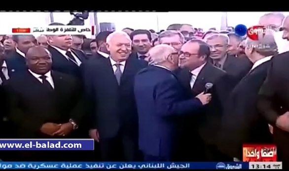 وضحك السبسي وجميع الحاضرين، وسارع على الفور واحتضن "أولاند"، قائلا له: "عفوا الرئيس فرانسوا أولاند.. وأولاند هو أول الحضور في هذا اليوم".