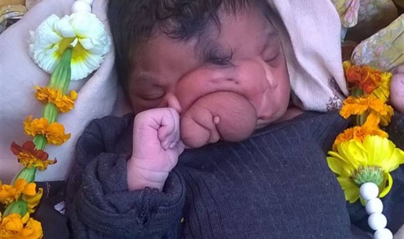 ذكر موقع "مترو" البريطاني أن الهندوس في قرية هندية يتقربون بالعطايا إلى طفلة ولدت حديثا تملك وجه فيل.