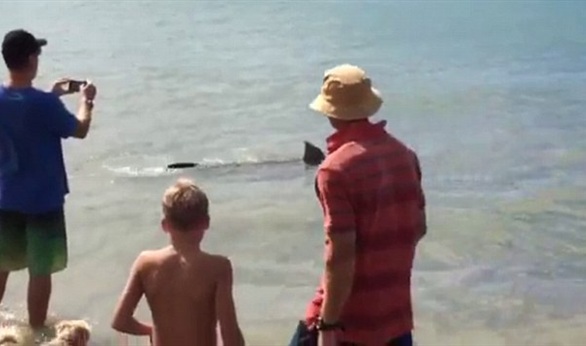 وأصيب المصطافون على الشاطئ بحالة من الصدمة بعد الظهور المفاجئ للفك المفترس.