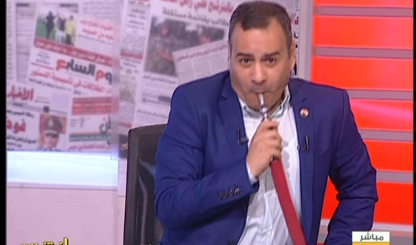 جاء ذلك خلال عرضه خبر ضبط الدكتور أيمن عبد المنعم محافظ سوهاج، موظفا بمدرسة "مصطفي" الابتدائية وهو يدخن "الشيشة" أثناء جولته في بعض المدارس اليوم.