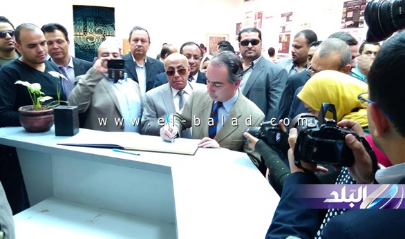 وكان فى استقبال المحافظ ، الدكتور ياسر صقر رئيس جامعة حلوان والدكتور جورج نوبار عميد كلية الفنون التطبيقية، والدكتور حلمى الشنوانى رئيس اللجنة المشرفة على إدارة نقابة مصممى الفنون التطبيقية والراعية الرسمى للاحتفال.