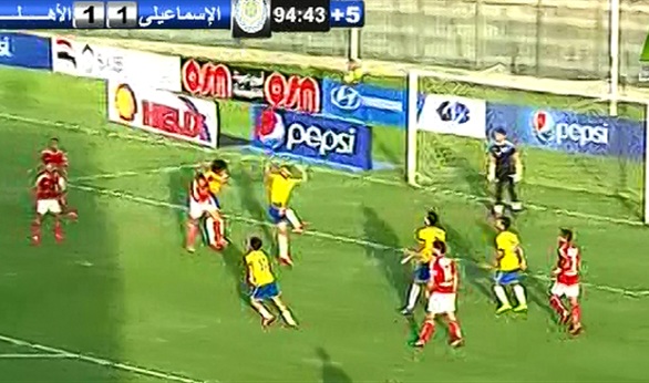 وفى الدقيقة 21 تعرض وليد سليمان الى عرقلة بمنتصف الملعب وسدد عماد متعب رأسية قوية تعلو عارضة عصام الحضرى فى الدقيقة 25 وبالدقيقة 29 تتصدى العارضة لفرصة إحراز عماد متعب الهدف الاول.