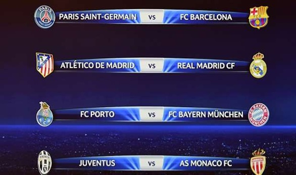أما موناكو الممثل الثاني للكرة الفرنسية والذي لم يكن أحد ينتظره في هذا الدور فيواجه يوفنتوس منافسه في نصف نهائي دوري الأبطال وأخيراً يلتقي أف سي بورتو مع بايرن ميونيخ علماً بأن الأول تغلب على الثاني في نهائي عام 1987 بنتيجة (2-1) في اللقاء الوحيد الذي سيجمع بين فريقين سابقين توجا باللقب القاري.