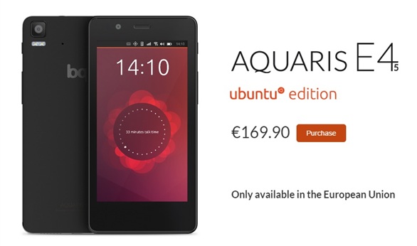 طرحت شركة BQ الإسبانية فعليا هاتف BQ Ubuntu، ويعرف أيضا باسم Aquaris E4.5 ، الذي يعتبر أول هاتف يعمل بنظام تشغيل Ubuntu Touch، وذلك بعد تأخر نحو 3 أشهر عن الموعد المعلن سابقا.