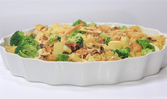 شوحي كوكتيل السي فوود زيت وزبدة وفلفل أسود وبابريكا وكاري وصوص السمكشوحي الحمبري في الزبدة والبصل والثوم ثم ضيفي له السي فووداخلطي الزبادي والرانش صوص والجبنة بالثوم والسويت آند تشيلي صوص والثوم لتحصلي على الصوصفي وعاء على النار شوحي الأرز مع ملح وفلفل وزبدة وكاري وبابريكاضيفي له ماء وغطي الوعاء واتركيه على نار هادئة حتى ينضجفي وعاء التقديم ضعي الجمبري والسي فوود ثم التورتيلا ثم الصوص وقليل من الكريمة اللباني ثم الجبنة والأرز و فوقهم ضيفي جمبري مرة أخرى ثم صوص وزينيه بالبروكلي وخبز التورتيلا والجبنة وأخيرا اللوز المحمر.