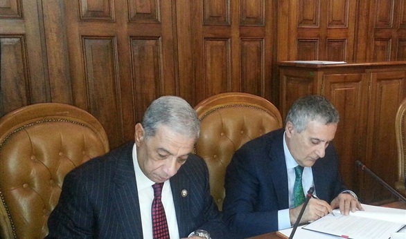 وقع الاتفاق النائب العام المصري هشام بركات والنائب العام الايطالى فرانكو روبورتو بحضور اعضاء النيابة العامة الايطالية والوفد المرافق للنائب العام المصرى.