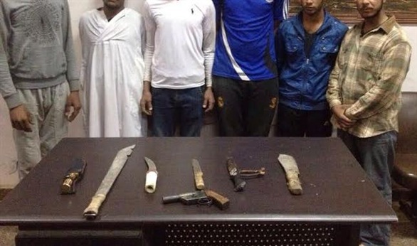 وتم ضبط كل من أشرف. م. ا 26 سنة ومقيم قرية الصعايدة مركز دشنا التابع لمحافظة قنا وبحوزته سلاح أبيض عبارة عن "خنجر" ، ومحمد. ح. م 21 سنة ومقيم السيل الريفى دائرة قسم ثان أسوان وبحوزته سلاح أبيض عبارة عن سنجة ، ومحمد. ا. أ 20 سنة ومقيم السيل الريفى قسم ثان أسوان بحوزته سلاح أبيض عبارة عن خنجر" ، وشقيقه أحمد 26 سنة عاطل ، وبحوزته سلاح أبيض عبارة عن "بلطة".