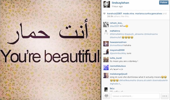 أثارت صورة نشرتها النجمة السينمائية الأمريكية ليندساى لوهان على صفحتها الشخصية على موقع التواصل الاجتماعى "تويتر" سخرية العديد من مستخدمى الموقع من العرب، بعد ان فشلت محاولتها ارسال رسالة ملهمة لمعجبيها.