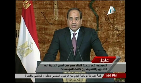 وتابع الرئيس فى كلمته بمناسبة عيد تحرير سيناء، "أبناء شعب مصر، إن مواجهتنا للإرهاب والتطرف لا تقتصر على الداخل المصري فقط، إنما فى منطقة صعبة تموج بالأزمات والمخاطر وغياب الأمن وإراقة الدماء وزعزعة الاستقرار.
