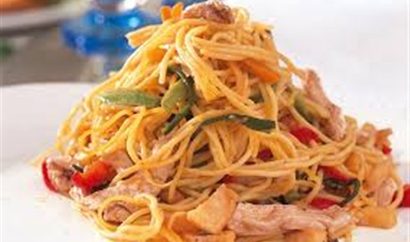 -تسلق المكرونة وتقلب قليلا فى الزبد ثم تضاف إليها الفراخ الروستو.