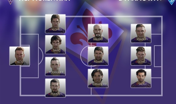 وقرر فينشينزو مونتيلا مدرب فيورنتينا الدفع بالمهاجم الألماني ماريو جوميز كرأس حربة ومن خلفه الثنائي محمد صلاح والأسباني خواكين سانشيز.
