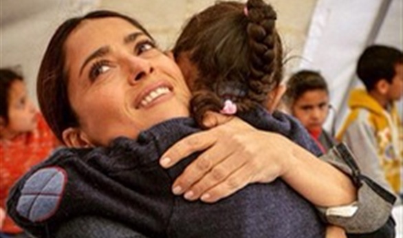 بالصور.. سلمى حايك تحتضن "اللاجئين السوريين" في لبنان