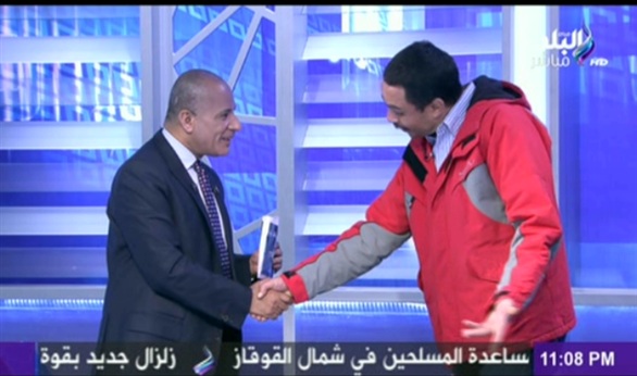 سلم الإعلامى أحمد موسى جائزة برنامج "على مسئوليتى" الأسبوعية إلى المتسابق محمد عبد المؤمن محمد من محافظة القاهرة عن إجابته الصحيحة لسؤال ..ماهى عاصمة إيطاليا، وإجابة المتسابق الصحيحة "روما" التى استحق الحصول على أثرها على جائزة البرنامج المقدرة بـ"20 ألف جنيه".