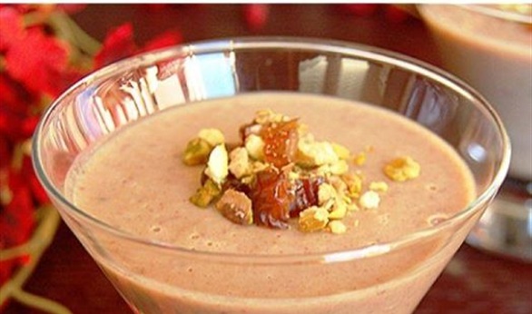 5- اسكبي الخليط في كاسات وزيّنيه بالمكسرات والتمر.