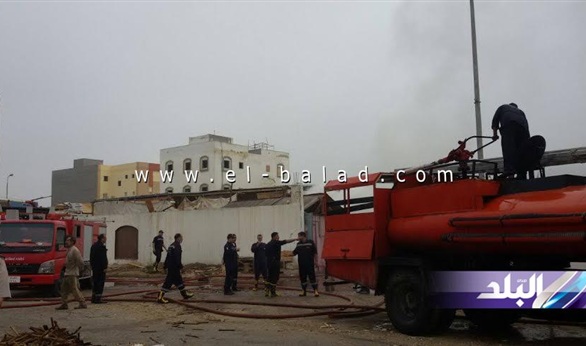 بالصور.. السيطرة على حريق بمصنع أخشاب بدمياط الجديدة