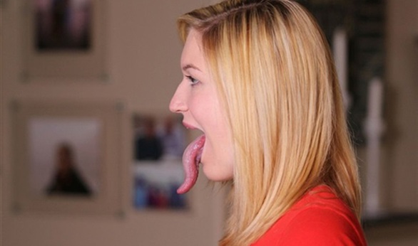 بالصور.. صاحبة أطول لسان في العالم