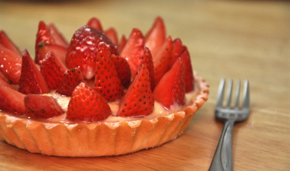 نقلب المكونات السابقة جيدا ثم نضعها على النار مع التقليب المستمر حتى تتماسك، نتركها تبرد فى درجة حرارة الغرفة وليس الثلاجة، نضيفها على التارت وتزين بالفراولة أو أى فاكهة مفضلة .