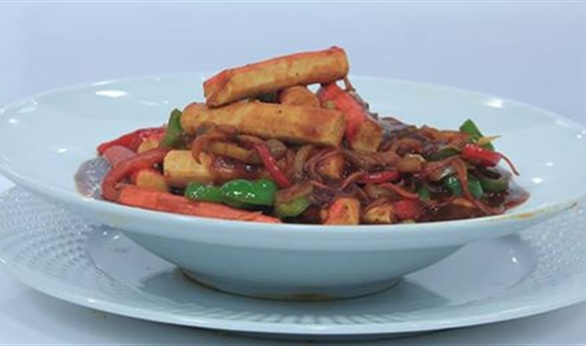- يضاف إليه الجزر والفلفل والصويا صوص والنشاء والسكر وأستمرى فى التقليب .
