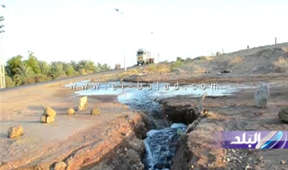 بالصور.. انقطاع مياه الشرب عن أحياء الخارجة بسبب انفجار خط الصرف الصحي