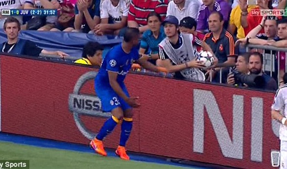 اشتبك باتريس إيفرا لاعب فريق يوفنتوس الإيطالى مع أحد المشجعين فى المدرجات أثناء مباراة الإياب امام ريال مدريد الإسبانى وذلك لتباطؤ المشجع فى منحه الكرة في المباراة المقامة حاليا فى اياب دور النصف نهائي لبطولة أوروبا للأندية الأبطال على ملعب سانتياجو برنابيو الشهير.
