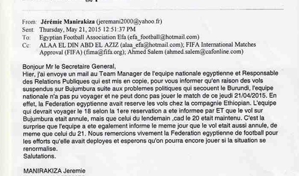 ننشر خطاب اعتذار بوروندى عن خوض "ودية" المنتخب الوطنى