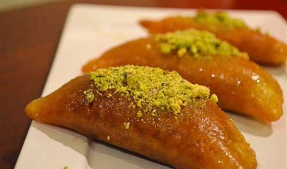 - بعدها يتم حشوها بالمكسرات "زبيب – جوز هند – سكر" وتقدم.