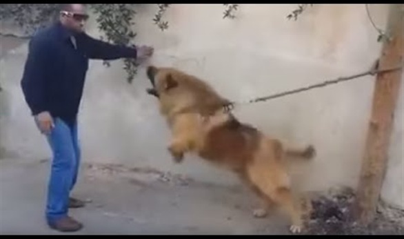 ويظهر فى الفيديو كلب ضخم مفترس ينبح بصوت عالي كلما اقترب منه هذا الشاب، واستمر فى النباح ومحاولة الإنقضاض على "جمال" إلا أن الكلب نسي أنه مقيد، وأحضر "العمواسي" أفعى ضخمة ووضعها أمام الكلب ليتراجع فوراً للخلف من شدة خوفه من الأفعى، ومن هنا يتم تقويم سلوك ها الكلب المفترس بدلاً من الهجوم المستمر على الأشخاص .