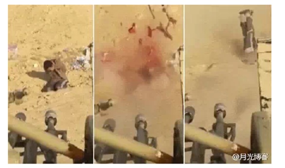 ظهر في الصورة المتحركة التي تناولتها العديد من المواقع الإخبارية في كوريا الجنوبية، شخص مقيد اليدين، ويطلق عليه قذيفة من سلاح ثقيل، ليتحول على الفور إلى أشلاء.