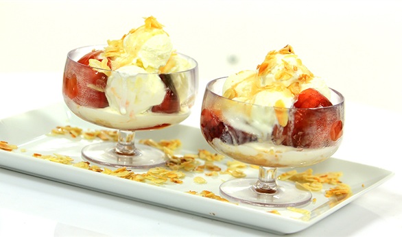 طريقة عمل حلو الخوخ بالأيس كريم للشيف سالي فؤاد.