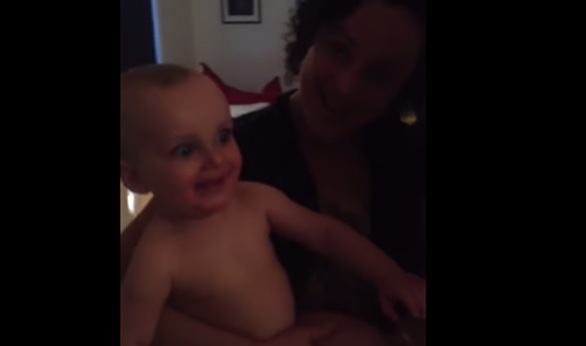 وبدا على الطفل في أول الأمر ابتسامة على وجه، ولكن بعد أن بدأ بالتركيز في تفصيل وجهه ويكتشف أنه تشبه والدته، ظهرت على وجه علامات الارتباك.