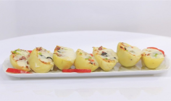 -إخلطى الطماطم مع الفلفل والبسطرمة والزيتون وضعيها على البطاطس رشى الوجة بالجبنة الرومى والموتزاريلا وأدخلى البطاطس الفرن حتى النضج ثم قدميها.