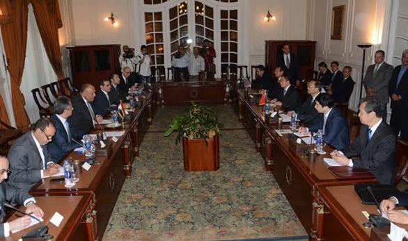 جدد وزير الخارجية سامح شكري طلب مصر بدعم الصين لأن تصبح مصر عضوا إقليميا في البنك الآسيوي للاستثمار في البنية التحتية، واستعرض شكري خلال لقائه يانج جيتشي نائب رئيس مجلس الوزراء الصيني، خطورة ظاهرة الإرهاب وأهمية التصدي لها بكل قوة وحزم بالتنسيق والتعاون المشترك بين البلدين. كما تناول الجهود المبذولة لإصلاح الأمم المتحدة وتوسيع مجلس الأمن.