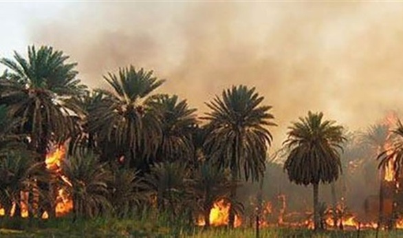 حريق بمزارع النخيل بقرية الموشيه فى الوادي الجديد