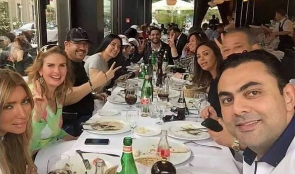 ظهر فى الصورة وفد الفنانين وهم يتناولون وجبة الغذاء حيث تواجدت يسرا وإلهام شاهين وعبير صبرى ومحمد كريم وهشام عباس ورفع الوفد علامة النصر.