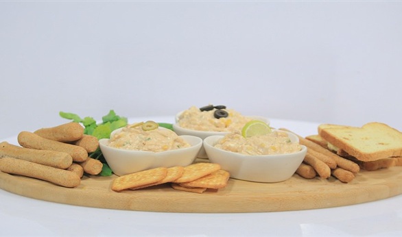 اخلطي المستردة والكاتشب والمايونيز واللبنة وبودة البصل وضيفي لهم التونة والبصل الأخضر والذرة الحلوةضعي ملح وفلفل حسب الرغبة وقدميه باردا مع البقسماط والتوست والبسكويت و الجرجير وزينيه بشرائح الليمون.