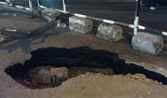 هبوط أرضى وسط أكبر شوارع الفيوم.. والمحافظ ينتقل لمكان الحدث