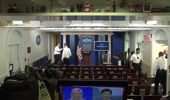 وقال متحدث "في الساعة 1:53 مساء تقريبا ورد اتصال لإدارة شرطة العاصمة بوجود قنبلة في قاعة المؤتمر الصحفية بالبيت الأبيض."